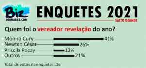 A vereadora Mônica Cury (MDB) é a grande revelação da Câmara Municipal de Salto Grande no ano de 2021. É o que apontam os resultados de enquetes online feitas pelo Jornal Biz para avaliar o trabalho dos parlamentares salto-grandenses. Clique aqui para acessar a página onde foram realizadas as votações.